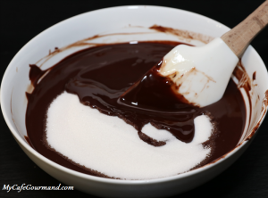 Faire fondre le chocolat et le beurre au bain marie ou au micro-onde. Mélanger pour obtenir un mélange homogène.