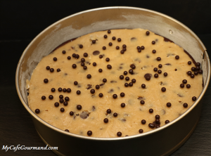 Répartir la pâte à cookie dans le moule sur la pâte à brownie.