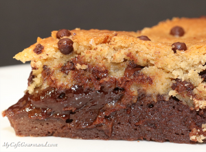 Faire cuire au four pendant environ 20 minutes. Vérifier la cuisson avec la lame d'un couteau. Le gâteau doit rester légèrement humide à l’intérieur mais pas liquide. La surface de brookie doit devenir légèrement dorée et croustillante.
