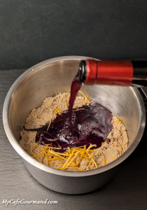 - Влить всю бутылку вина, поставить на огонь и довести до кипения.